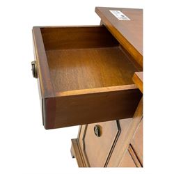 Antique charm shines through an 18th-century oak corner elbow chair with elegant vase-shaped splats and an 18th-century mahogany low-boy, boasting a shaped apron and cabriole supports. For those seeking statement seating, the Kingsgate collection offers red leather wingback and bucket armchairs with deep button tufting and brass stud trim. Completing the lineup is a Multi-York two-seat damask sofa in rich burgundy and beige, paired with a matching footstool.