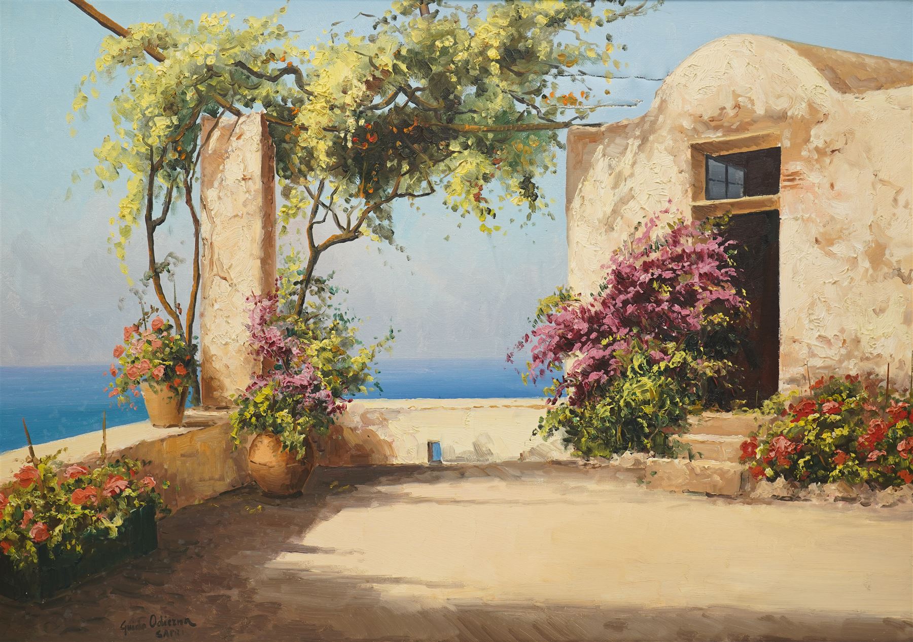 Also featured is Whitby Piers at Sunset, a vibrant and contemporary oil on canvas by Chris Geall (British, b.1965). Signed and dated 2010, this atmospheric seascape captures the golden hour glow over the North Yorkshire coast, reflecting Geall’s distinctive style and mastery of light.